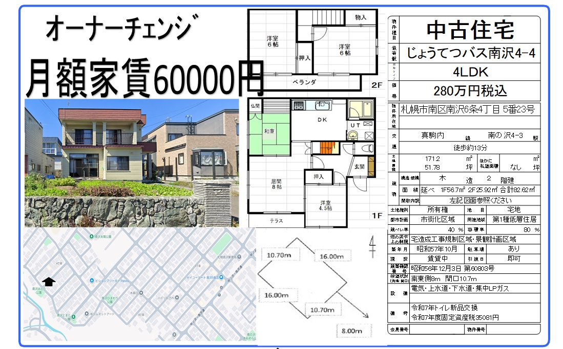 オーナーチェンジ南区南の沢6条4丁目 280万円